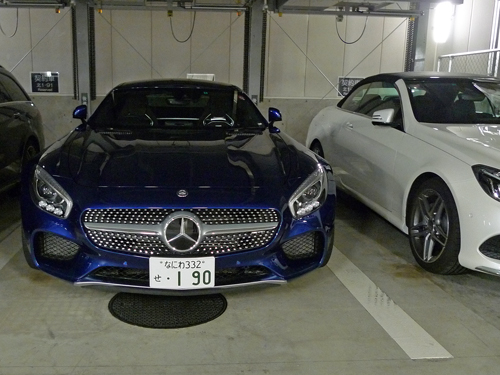 それにしても車高が低いのが隣に並んだE400カブリオレと比較しても分かる。