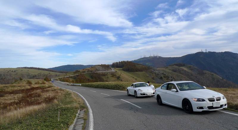 絶景美ヶ原高原道路でBMW 335i クーペ、ポルシェケイマン