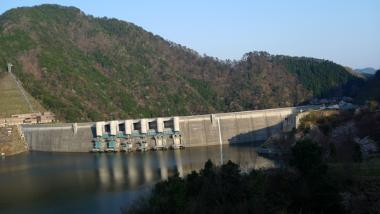 随分と陽が長くなりました。18時を過ぎてもそこそこ明るいから助かります。温井ダムを眺めつつもひんやりとした空気で体が少し冷えて来ます。まだ、ここでは桜が花びらを残していました。