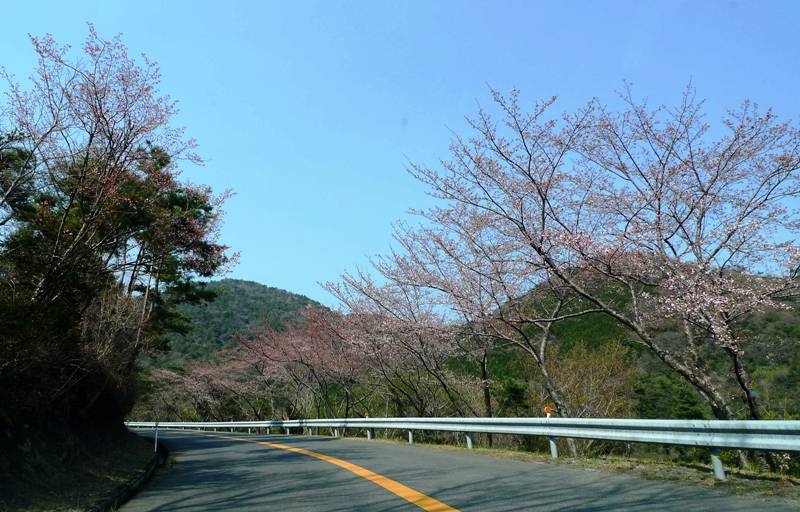桜もすっかり満開ってところもあり、ええ感じで島を走ります。このあたり広域農道ってのが多いのですがすばらしく綺麗な道で走りやすかったです。道と言う点ではさざなみスカイラインよりこちらの方が車でのドライブは最適です!