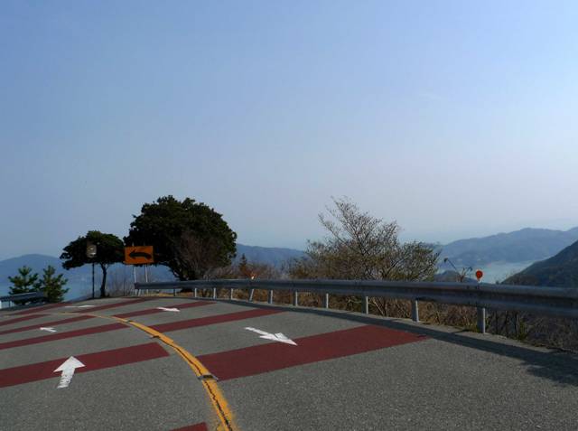 道幅が広い場所もありますが大半はタイトなワインディングが続きます。どちらかと言うと単車道です。ま、1回走ればいいか・・みたいな感じで下りながら木々の間から見える瀬戸内海の景観はいい感じなのですが車で走るにはちょっと狭いので楽しめないかなってのが感想です。