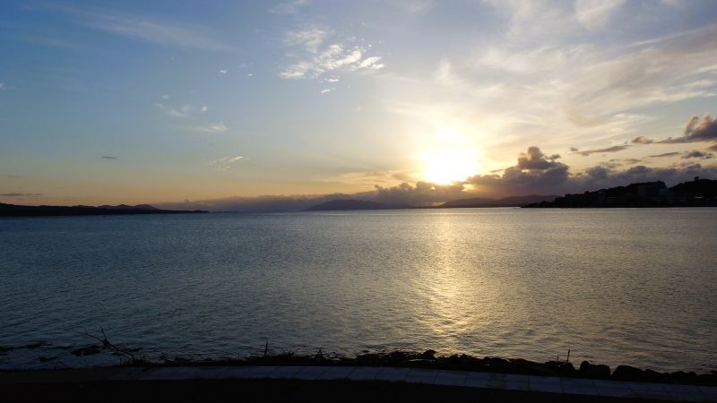 夕焼けスポットに到着すると結構な人が夕日を待ってたり、スマホで写真を撮ってたりしてたが向こうに見える夕陽を見て今日はどっぷり沈む夕陽を見るのはだめやなって雲の位置をでわかった。がしかし、その夕景は味わい深かった。