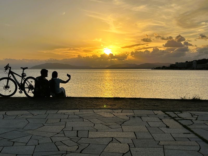 湖畔でゆっくりと夕景を今まで見る事がなかった。