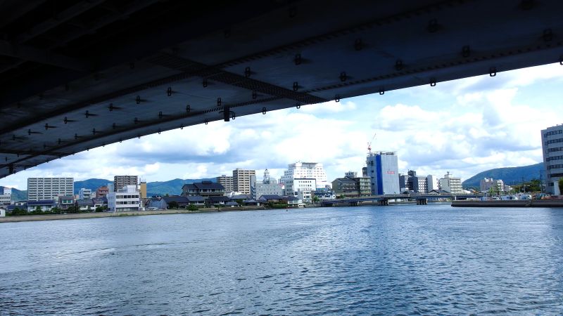 大阪の淀川のクルーズ船の様にスリリングな橋をくぐって