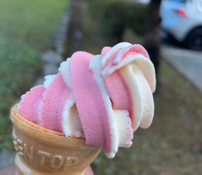 一乗谷朝倉氏遺跡で買ったソフトクリームは今にも落ちそうで