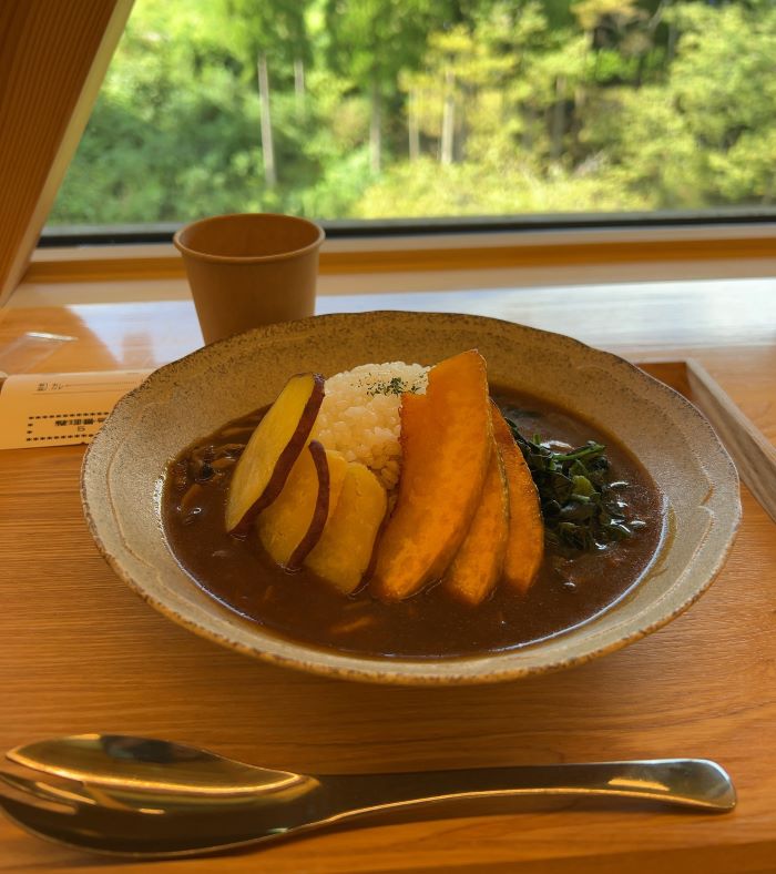 そばの郷池田屋」さんのそばも美味しかったので迷ったのですが今回は道のオアシスのカフェでカレーにしました。