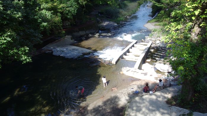 施設内を流れる足羽川で川遊びをしているご家族、カップルも居られて見てて本当に心が和む想いでした