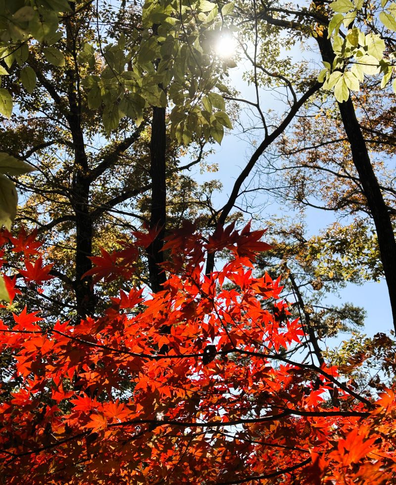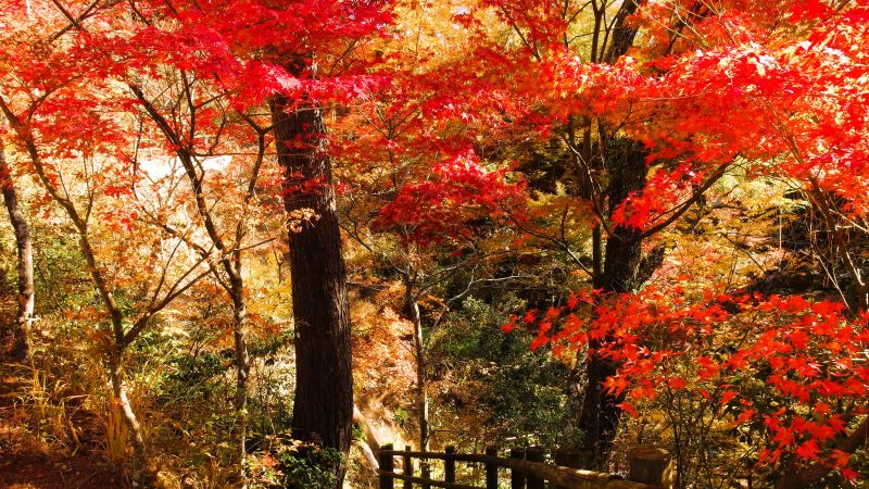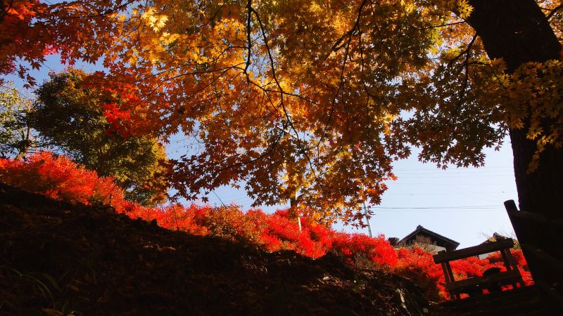 天龍峡の農園の周囲は紅葉が見事だった。長野と言えばりんご