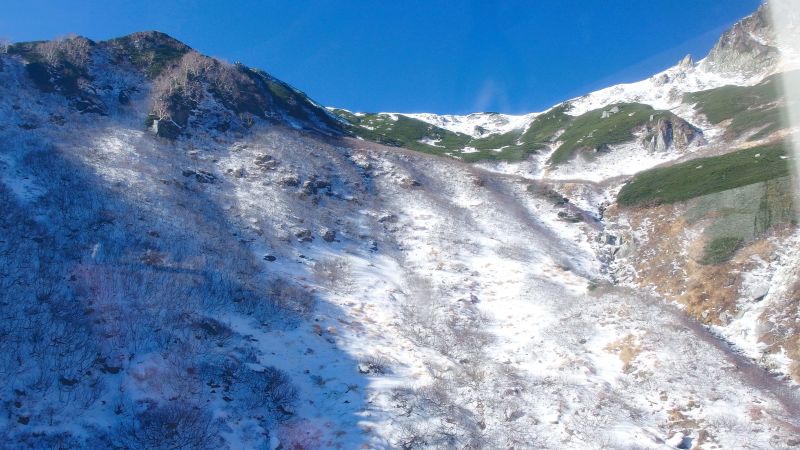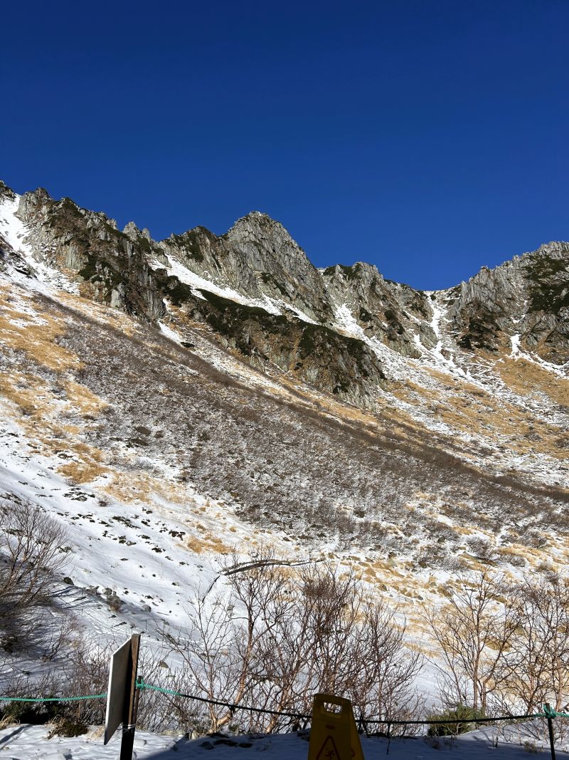 前日、ホテルの人との話では氷点下って事を伺っていたのでかなり寒いと思っていたのですが、想像以上に寒く感じなかった。多分、俺自身が高揚してたのと晴天に恵まれて陽射しが降り注ぐ天候のおかげだったと思います。辺りを見回しながら散策してて4,100円の費用は決して高く感じないと急遽、ロープウェイに乗って千畳敷カールに向かうことを決めて正解だった。