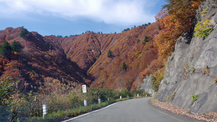 新潟、奥只見区間は秋色に染まった山々がドライブ心を高揚させてくれて、どこまでも走って行きたくもなる。ツーリングの歓びを堪能できる道だと思う。