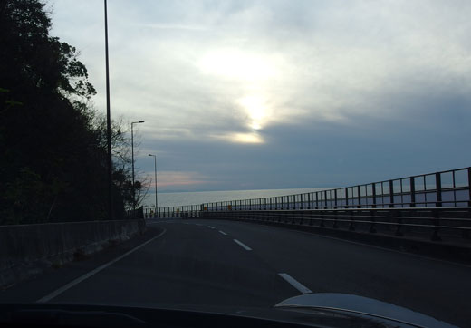 しおかぜラインに着いても夕日は雲に隠れていた。