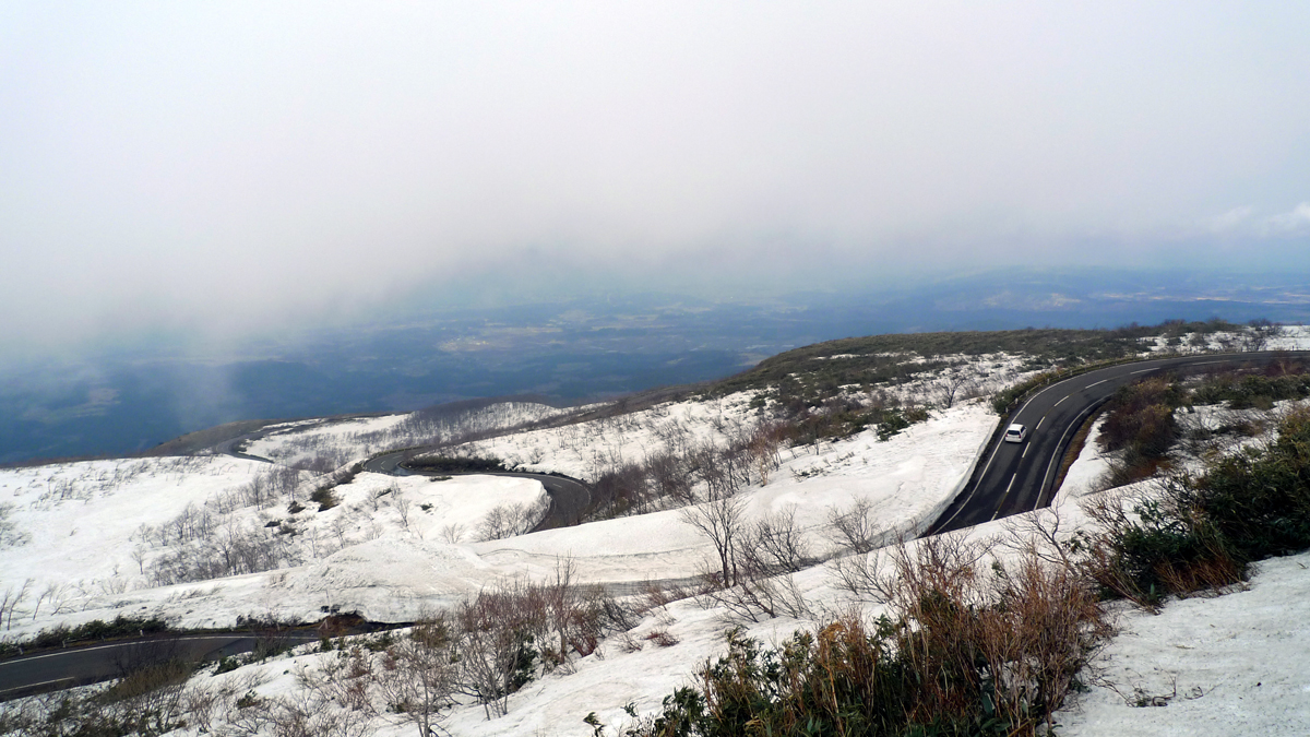 お勧めは山形側から駆け上がる方がドラマティックです。このワインディングを見ているだけで気分はもう