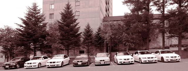 ちゃうちゃう(^^; どうやら関東のBMWオーナーのオフ会で集結していたようです。俺の車もなんか関西からドタ参しました!みたいにあるので思わず記念撮影です。