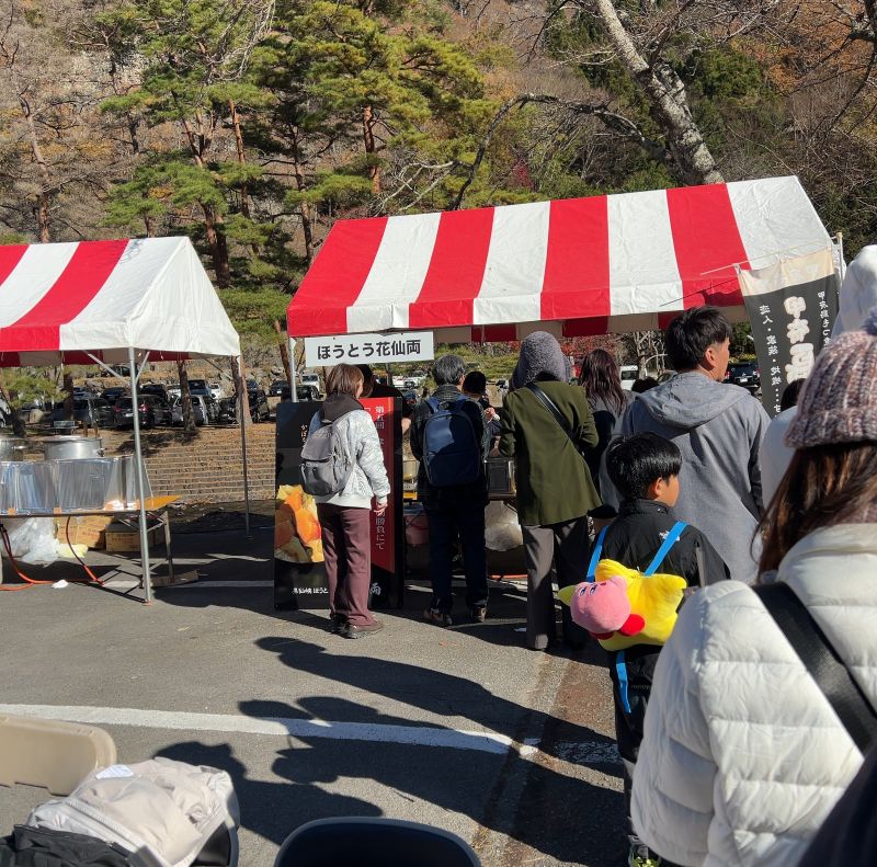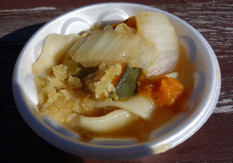 「焼きほうとう」と「花仙両」さんのほうとうをいただきました。300円×2杯で600円