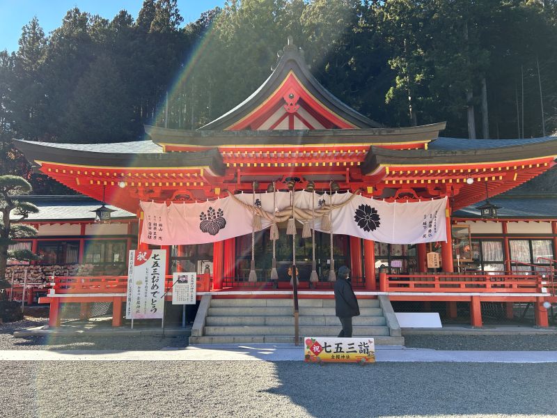 金櫻神社(かなざくらじんじゃ)は甲府の名勝昇仙峡を登りつめた地に鎮座する金峰山を御神体とした神社だそうですので寄っておくとこですね