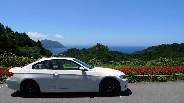 関西ナンバー我が335クーペはまったりと海岸線を走る。