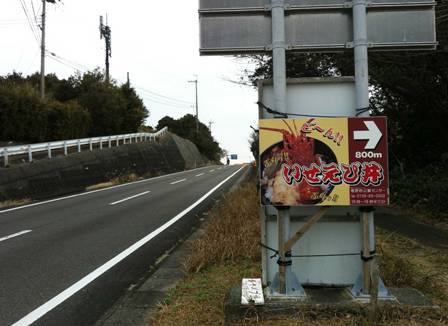 2時20分、定刻の3時の昼飯だ!!って何を食うかここまで来たら海の幸を食いたいってのが人情です。車内でドライブ本を眺めて検討していると美味そうな海老丼の写真が目に留まりました!伊勢えびまるごと丼2500円やけど行っとく~う!とちっさく書かれた期間10月から1月まで、、、今は何月?!あら。。。