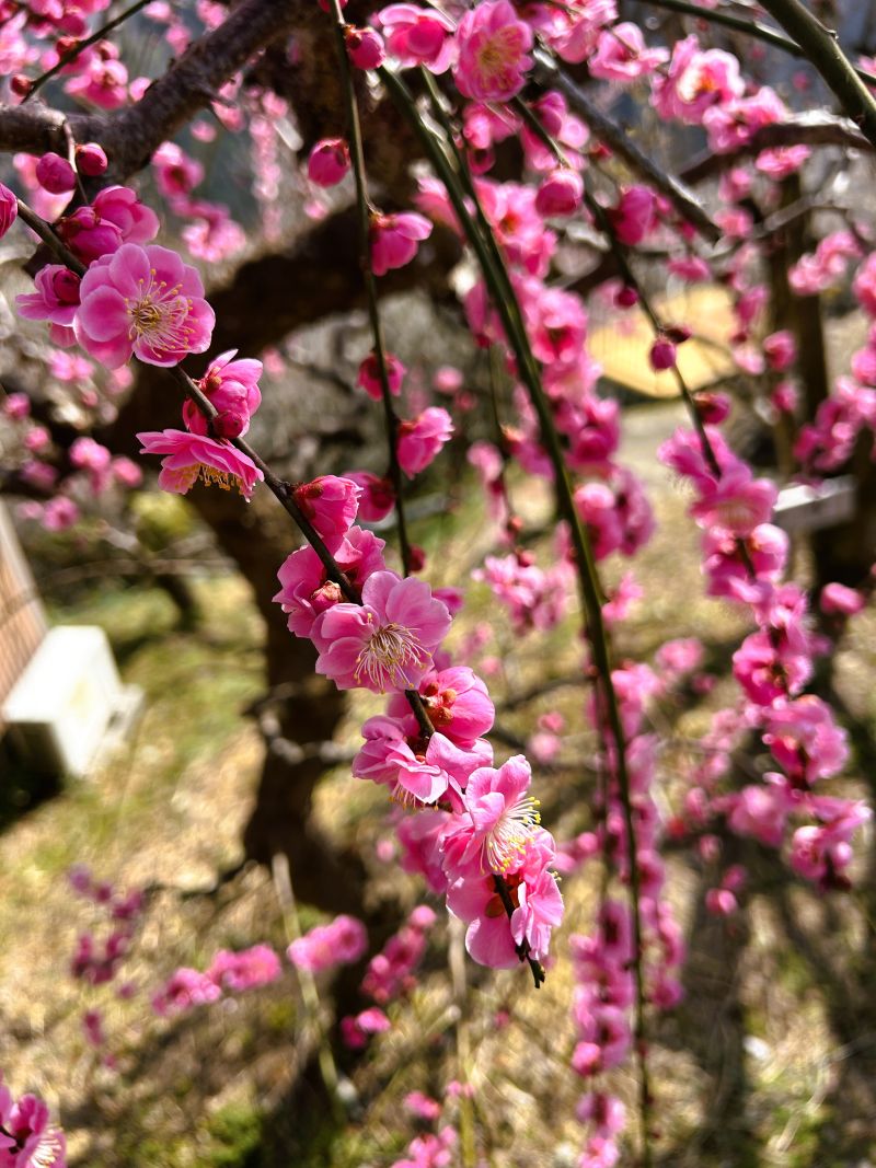 のどかな風景、美しい梅が素敵な空間を彩るように思えてポカポカ陽気で気分良く歩いていました。俺も笑顔で