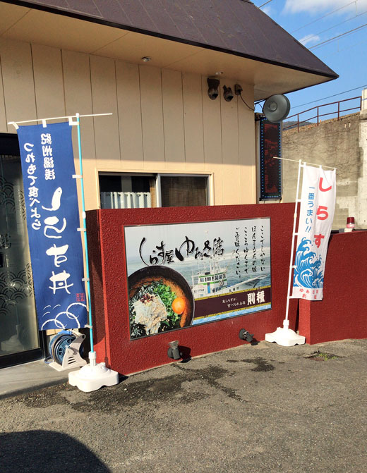 最初の目的地は本日のメインイベント!?しらす丼を食べるため「しらす屋 ゆあさ湾 則種 」さんに行く事にした。いつも混雑しているが到着時間が飯時からずれてたせいか車を停めれた。お店に入ると当然の様にお目当ての生しらす丼を注文した。