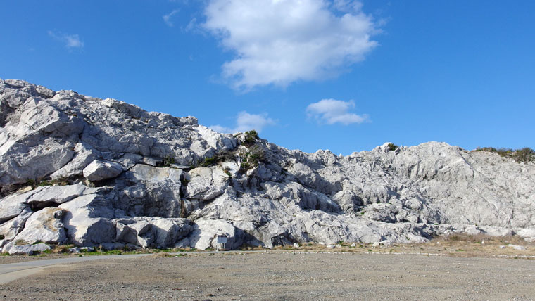 石灰岩の白い岩がつらなる景色は壮大で自然美を感じる。