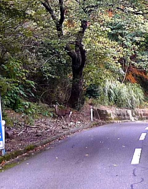 レインボーラインを走行してると鹿がいててびっくり(@@;気をつけないと引いたらえらいことですから・・・昔、ここでサルの群れを見ましたがやはり平日で日暮れ時ともなると安心して出てくるのでしょうか?!写真中央に景色と同化するように鹿が立ってるのが分かるでしょうか?こう言う時はまったーりですね(^^)