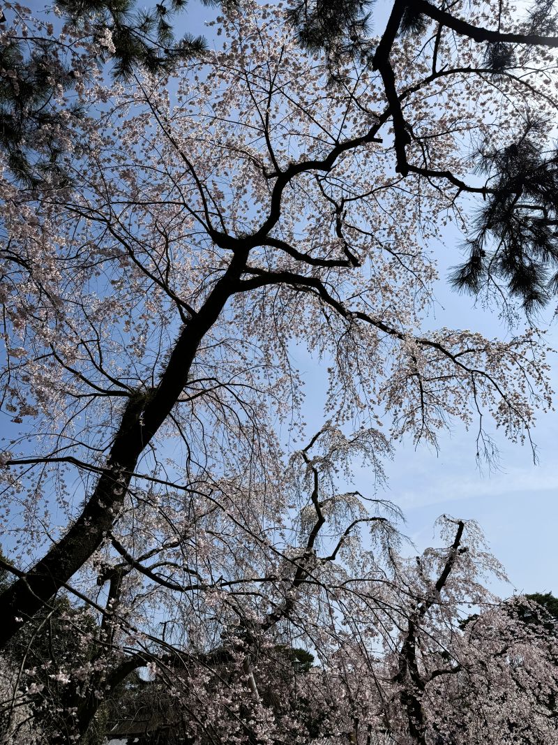 近衞邸跡の糸桜(北西エリア)は まさに「糸」のように繊細。頭上から降り注ぐ薄紅色のシャワー。昨年の感動が蘇る、圧倒的な華やかさ。