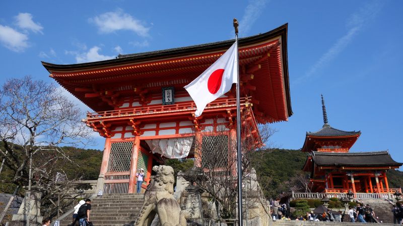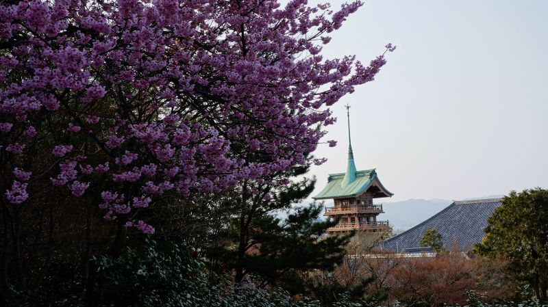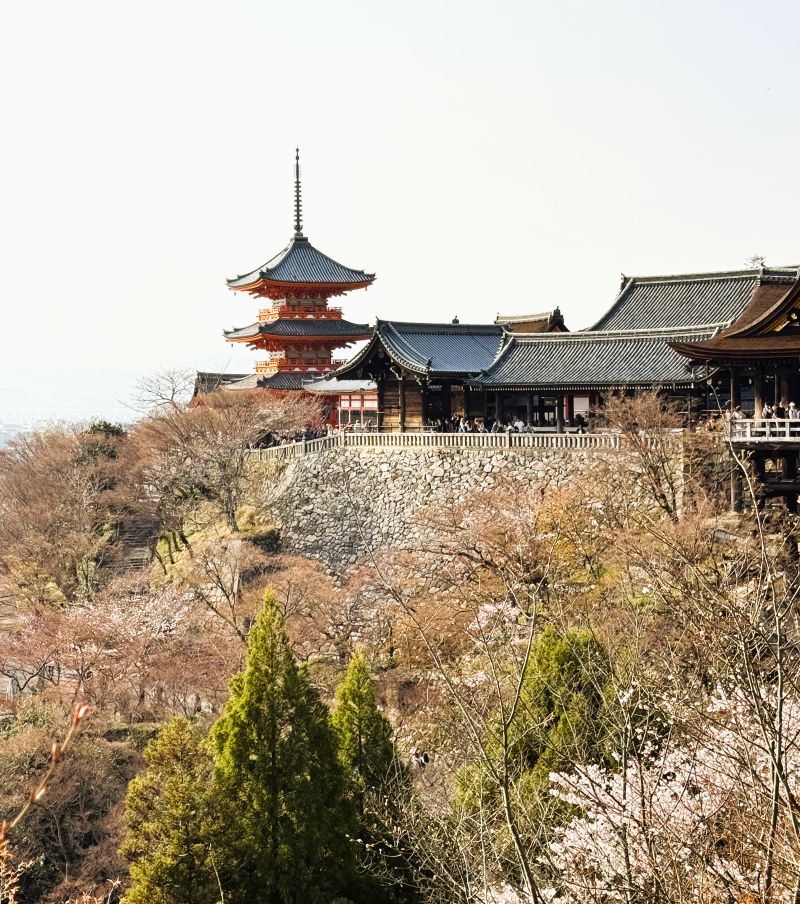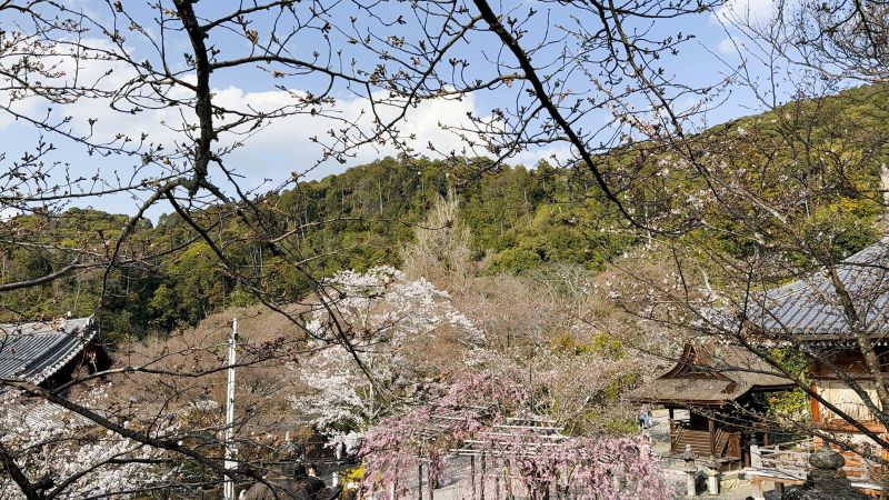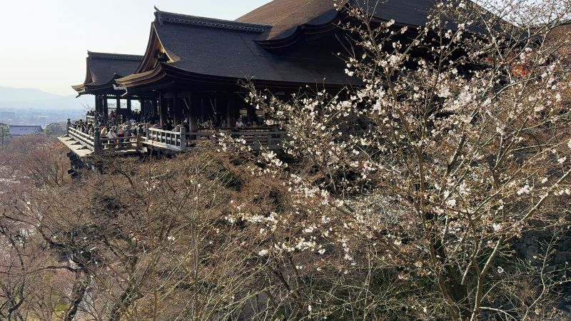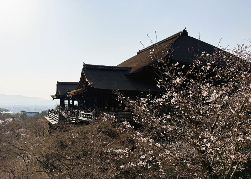 清水寺へと足を伸ばすと、境内の桜はまだ四分咲きほど。