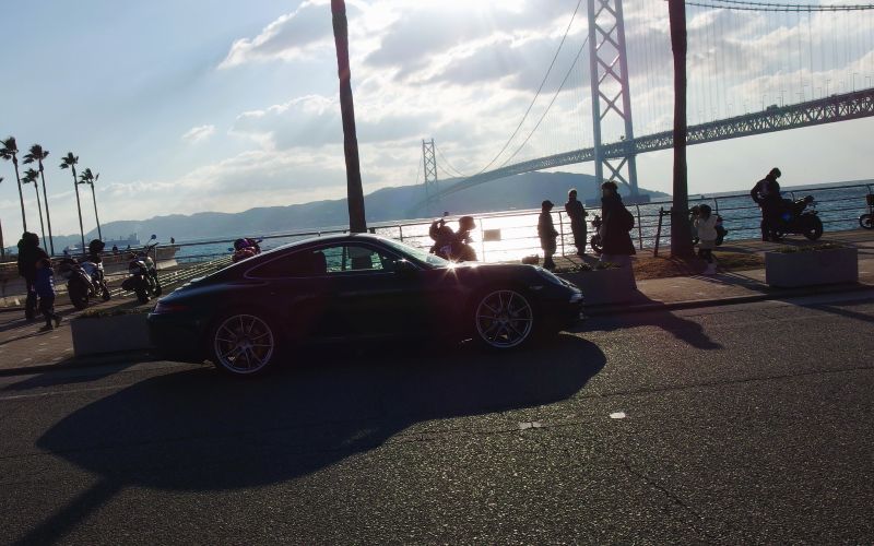 帰路、アジュール舞子で明石海峡大橋を眺めながら天気もええし、美味しいお刺身も食べれたし、911にも乗れた。