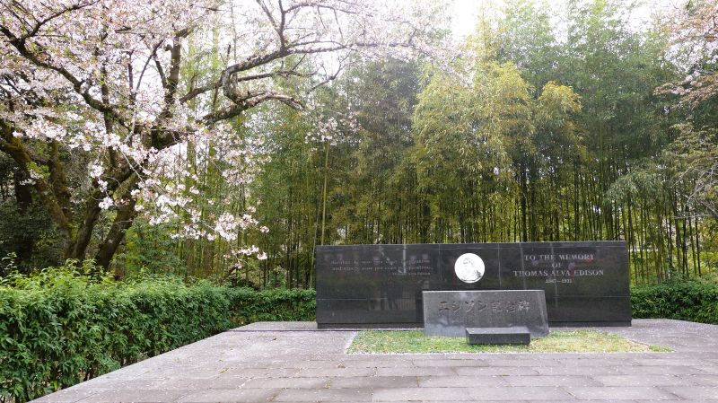エジソンの石碑石清水八幡宮では、男山にゆかりの深い発明王エジソンの遺徳を偲び、毎年2月11日にエジソン生誕祭、命日の10月18日前後にエジソン碑前祭が斎行されており、碑の前で両国の国旗が掲揚されます。また石清水八幡宮ではエジソンの絵が描かれた絵馬を授与しており、勉強熱心なエジソンにあやかりたいとの願掛けにも使われています(* ̄- ̄)ふ~ん