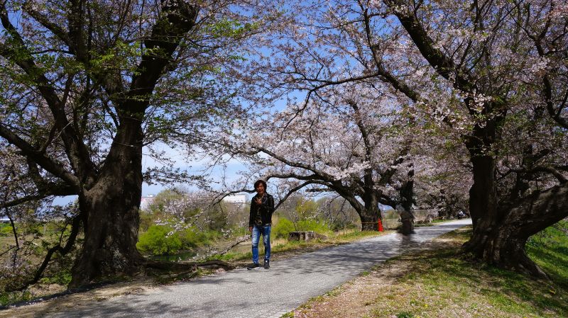 ここの桜はすっかり花びらを散らしてて葉っぱが目立っていたが一部、綺麗に咲いてる桜が有って写真を撮影していたら傍らでひらひら舞う桜を捕まえる様に手を翳してるおそらく同世代の女性が居てた。
