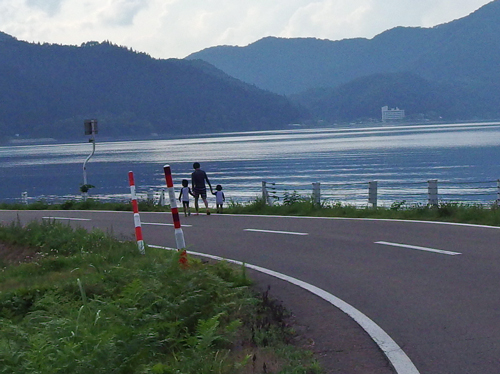 田沢湖でちっさな娘さんを連れた若いお父さんが居て