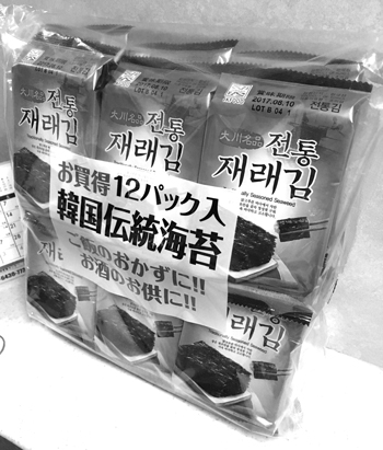 美容室から帰ったら小腹が減って来たので先週、整体に行った時に整体師のKさんに毎年貰ってる韓国海苔をバリバリ食べた。