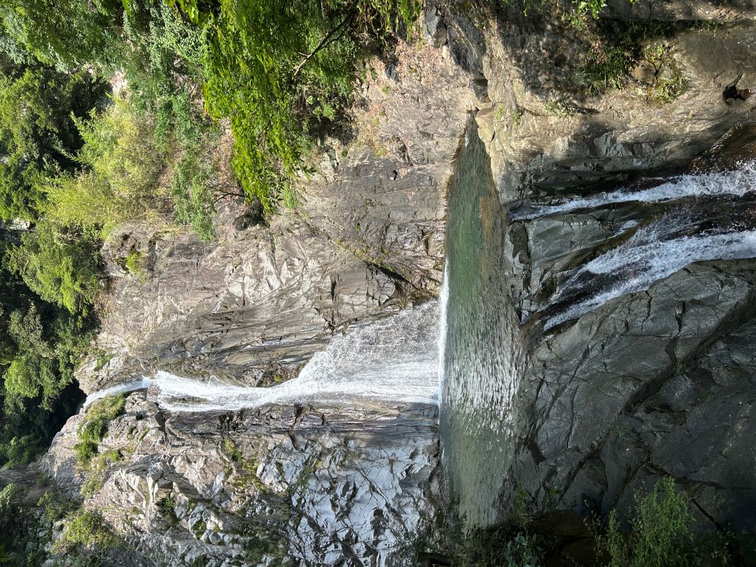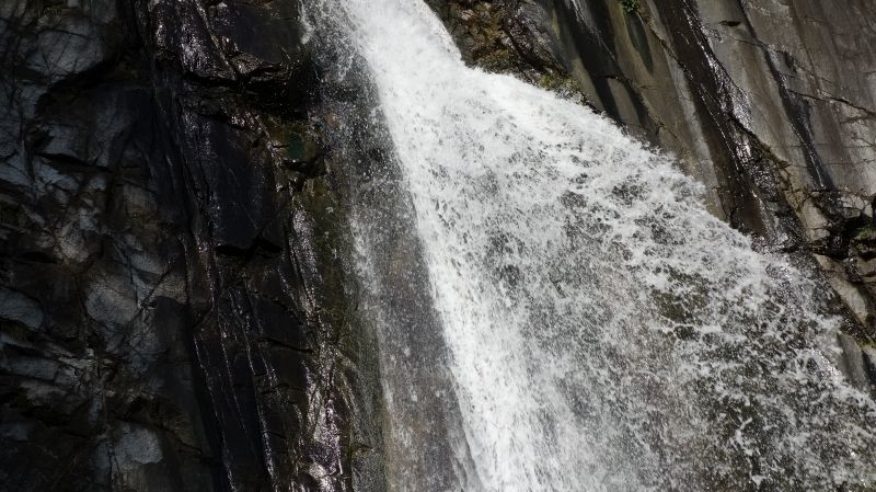 猛暑の中で見た滝は流水が閃光を放つようだった。