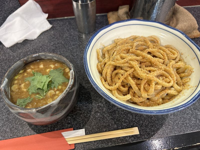 ちょうどええ時間で昼飯につけ麺をつるつるっとって...