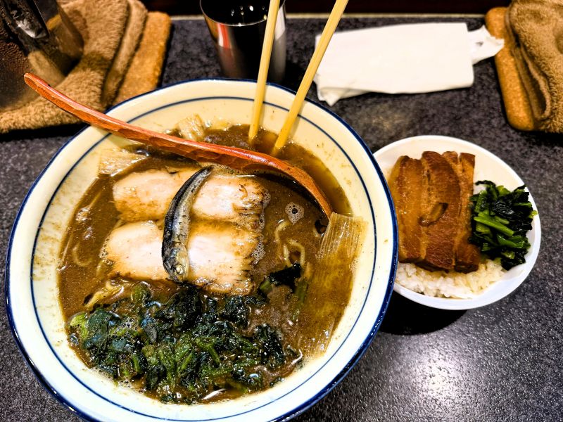 八海山」で煮干しらーめんにハマった流れで、久しぶりに煮干しを選んだ。濃厚なのに後口がよくて、気づけばスープまで飲み干していた。ランチセットの角煮丼は、以前より少し薄くなった気がしたけれど、それでもやっぱり好きな店だと思えた。