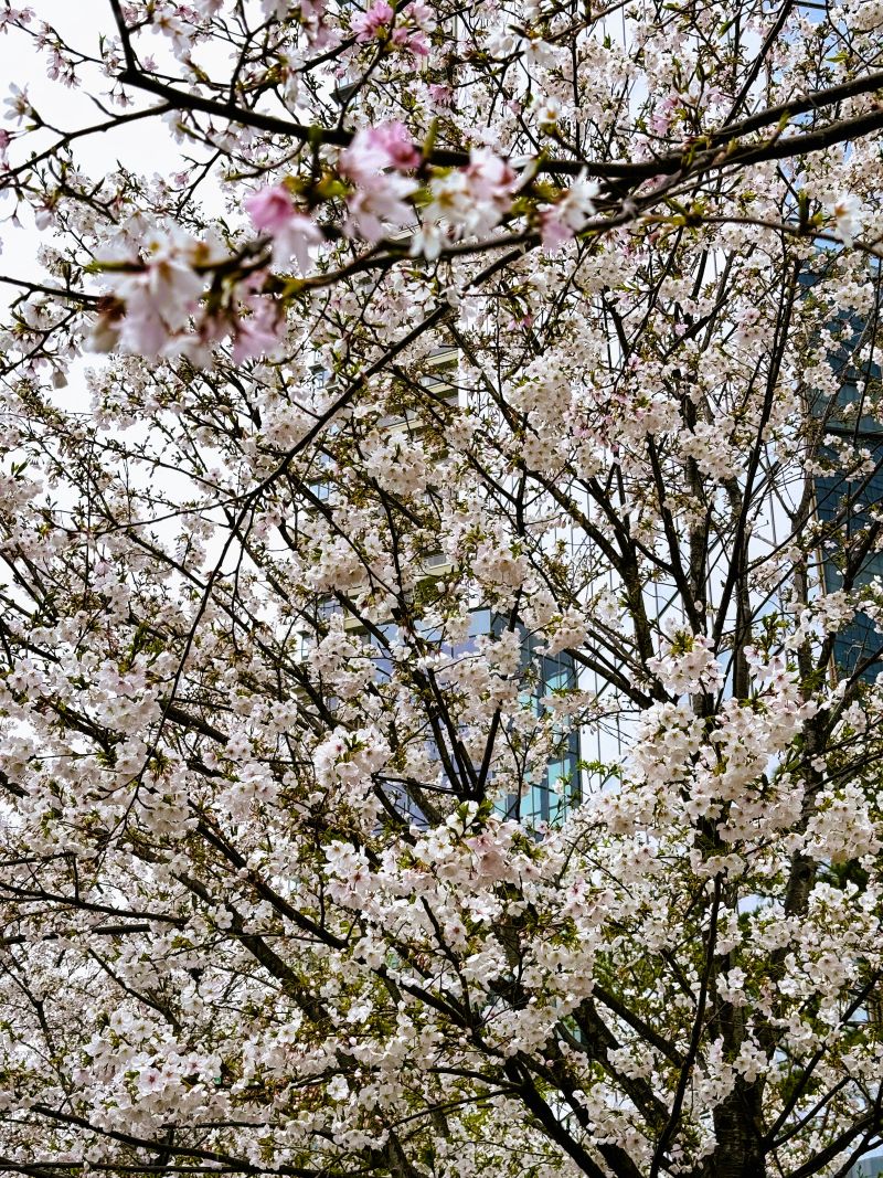 梅田の桜は、雨に濡れずに楽しめた。