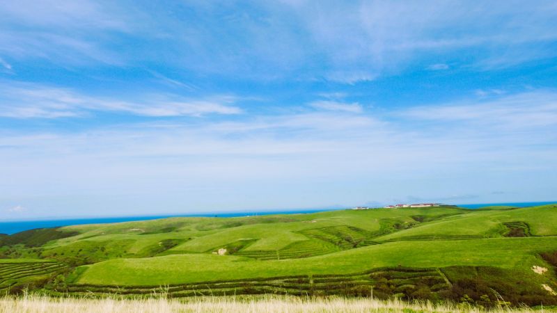 日本最北の聖地、宗谷丘陵。 氷河期が作ったなだらかな緑の丘は、モータリストにとって一生に一度は走りたい道、「聖地」と呼ばれている。 空の青とのコントラストは、まさに異国で、巨大な風車が57基も並ぶ光景は圧巻だった宗谷丘陵道路。