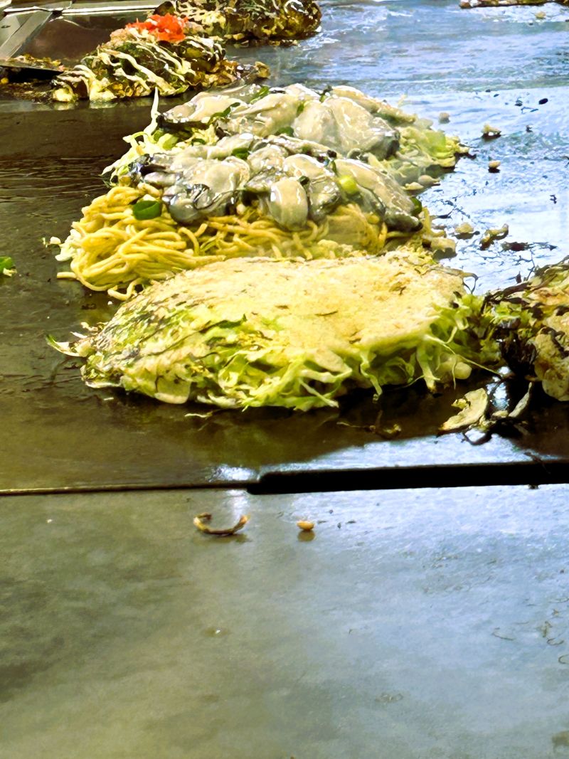 牡蠣は小ぶりながらも美味しいお好み焼き