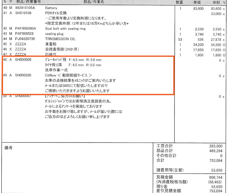上記、2点が気になった。これは経営状況が芳しくないからポルシェジャパン、販社の方から出来るだけ予防保全でオーナーにメンテナンス費用を上振れさせる様に指示、指導が出ているのではないかと言う疑念だった。