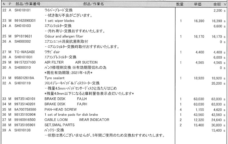 特に大きな修理部品の発生はなかったがウィンドウォッシャーホース交換が修理箇所でその他はなかったが今回はPDKオイルの交換時期になっており交換した。