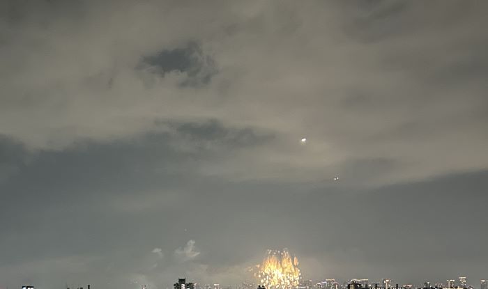 どーんと音がしだしてマンションの内廊下で淀川の花火を眺めた。
