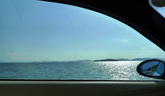 車窓から見える瀬戸大橋にシーサイドドライブも更に快適、快調、快感