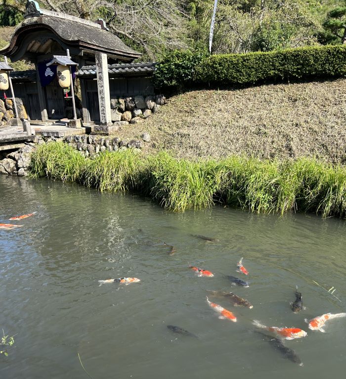 朝倉館跡の唐門の濠には鯉がいっぱいでした