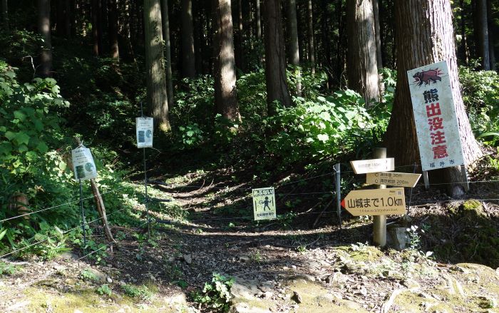 3本の電線がはりめぐされていて動物多そうだし、あっさり一乗谷城跡登山を見送りました。