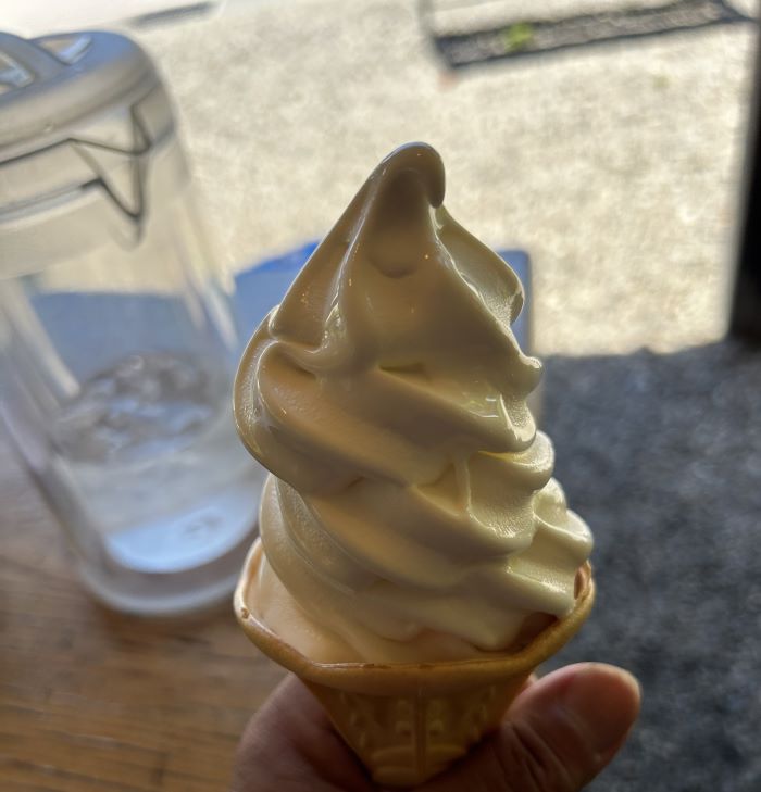 手にしたら溶け出したソフトクリームを見て慌てて食べた。