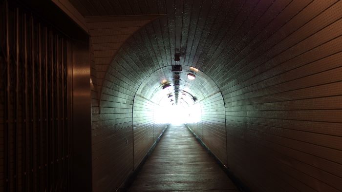 駐車場からエレベータを使って下(集落の有る地)に行けます。最高に涼しかったので
