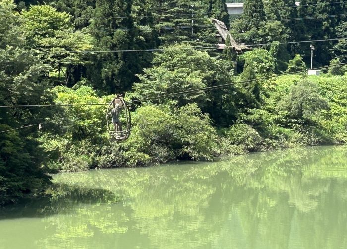 かごのわたし籠の渡し (かごのわたし)は江戸時代、橋の代わりに対岸に渡る手段として使われた「籠の渡し」の見本は、冬期を除き、菅沼集落と五箇山合掌の里をつなぐ隧道の途中に設置してあります。また菅沼橋からは庄川に架かる「籠の渡し」を見ることができます。