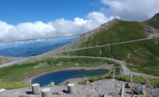 鶴ヶ池も青く素敵です!!乗鞍山頂の絵画のような風景に見入ってしまった。いやぁ~ホンマに来て目に焼き付けておいて損の無い風景です。いい思い出をさらに(笑)