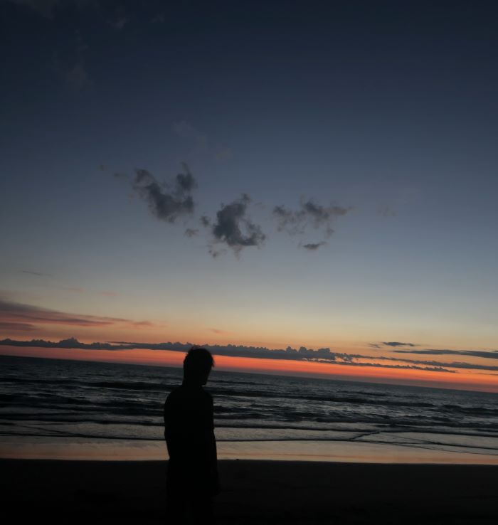 宿で夕食の後、海を見に行ったら物凄い綺麗で(写真で表現できてない海が青く輝いてた)感動して暫く夕焼けを眺めていました。