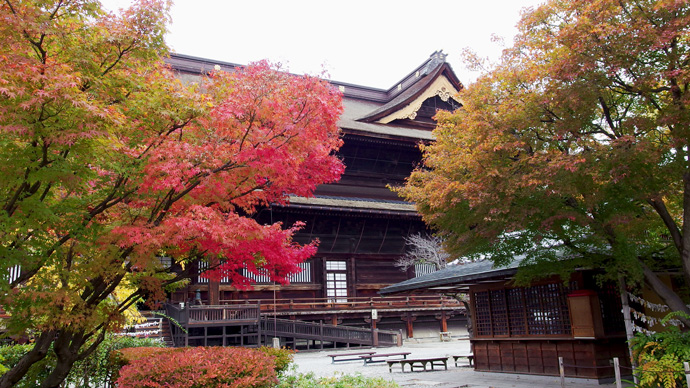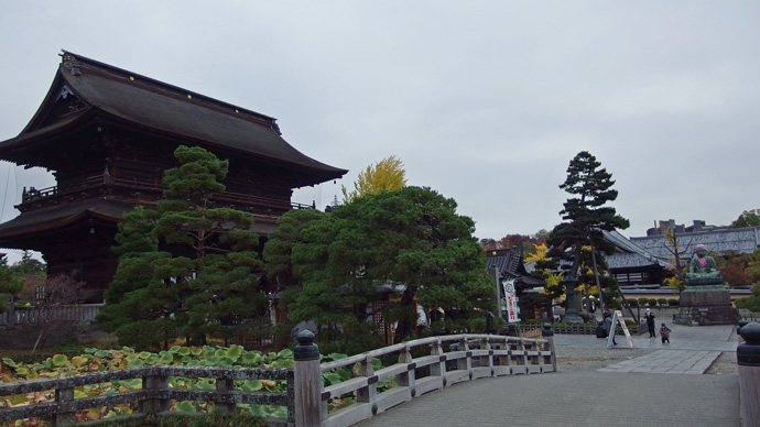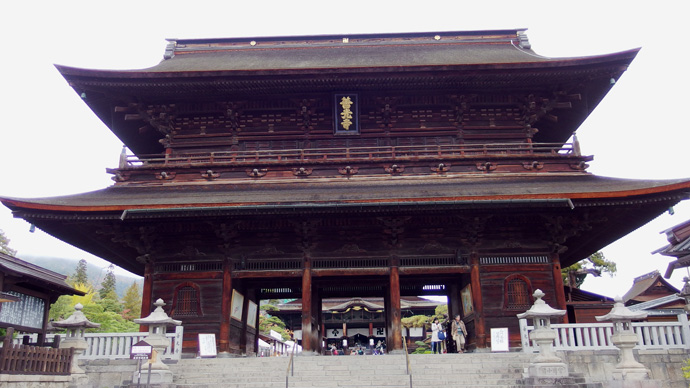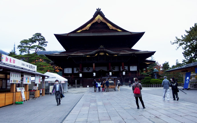 国宝の善光寺本堂荘厳な雰囲気が漂ってて、朝早いとは言え参拝者はそれなりにいる。